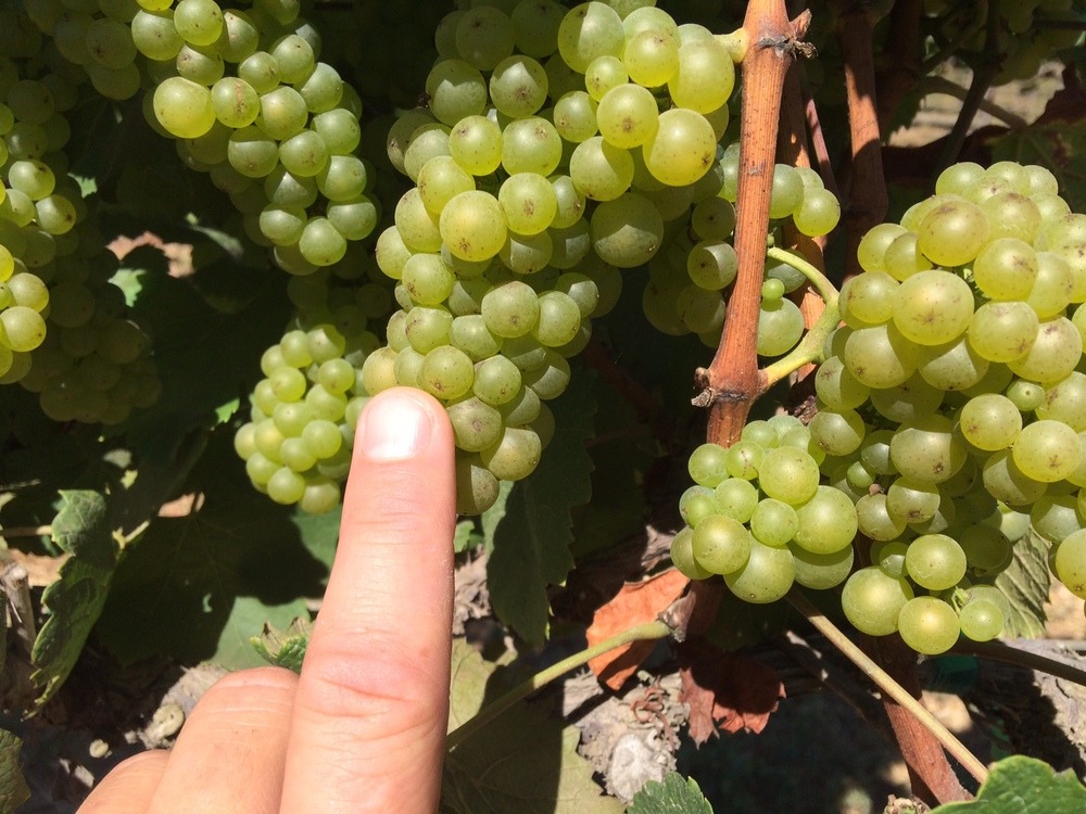 Why, you may ask?  Because more skin means more flavor.  So many flavors are locked up in those crunchy little grape skins. If the skin-to-juice ratio is high, so will the concentration of flavors in the wine be.  Wente 15 has such small berries this year, the skin-to-juice ratio is off the charts.