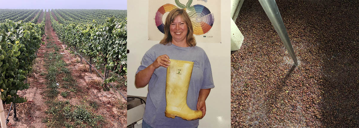While the orange wine bubbles away in the fermenter, Lane and I are wandering the vineyards in anticipation of our next pick. We are picking samples of the fruit in many of the vineyards – mostly Chardonnay, Pinot Noir and Pinot Gris (as the Grenache varieties are still a long ways off) – and taking the samples back to the winery, where Lane stomps the grapes with her magic yellow boot. Okay, I admit, sometimes I wear the yellow boot, but it doesn’t fit me very well. The boot has been with Lane since her winemaking start in the early 1980’s.