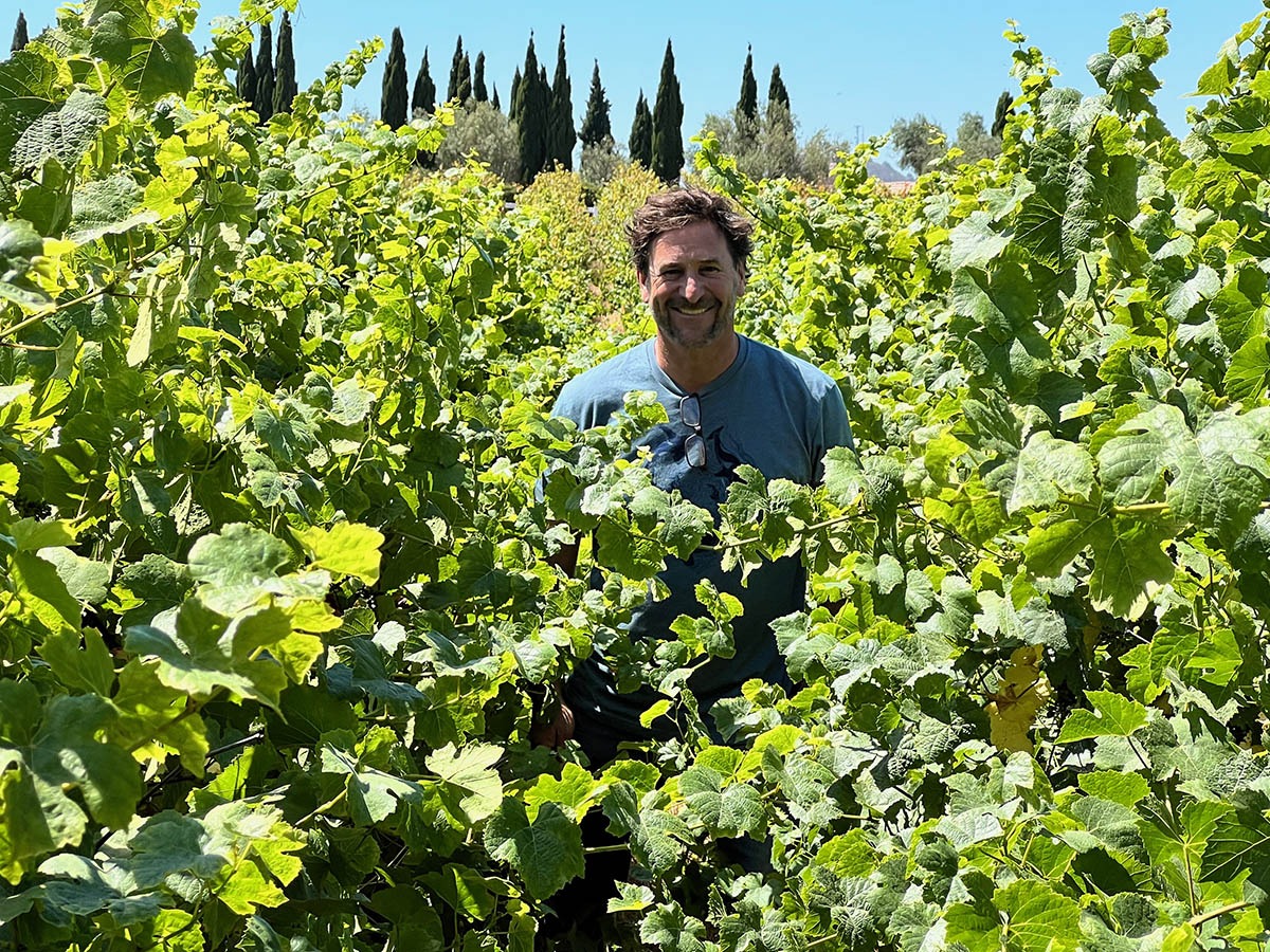 Randall in his happy place, the vineyard. Popelouchum, 2021